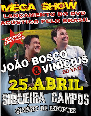 LANÇAMENTO DVD AO VIVO "JOÃO BOSCO & VINÍCIUS" 25 / ABRIL EM SIQUEIRA CAMPOS , INFORMAÇÕES 9904-8505/9965-7990